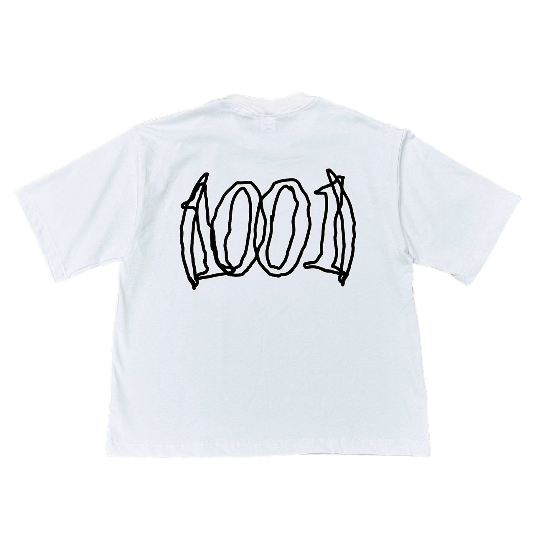 Oversized cropped tee, extended sleeve. Features silkscreen identics on both sides.